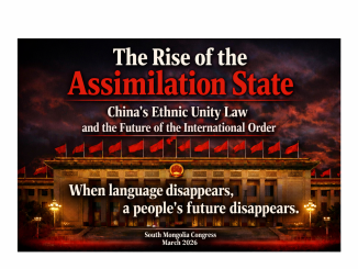 南モンゴルクリルタイ(世界南モンゴル会議)声明 中国「民族団結進歩促進法(草案)」に関する声明 ― 文化的ジェノサイドの制度化に対する深刻な懸念 ― 南モンゴルクリルタイ(世界南モンゴル会議)は、中国 …