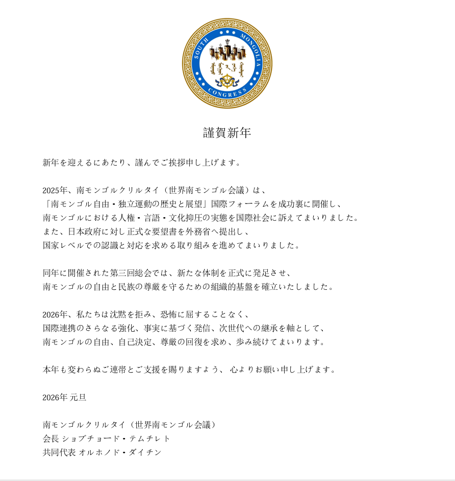 2025年、南モンゴルクリルタイ(世界南モンゴル会議)は、