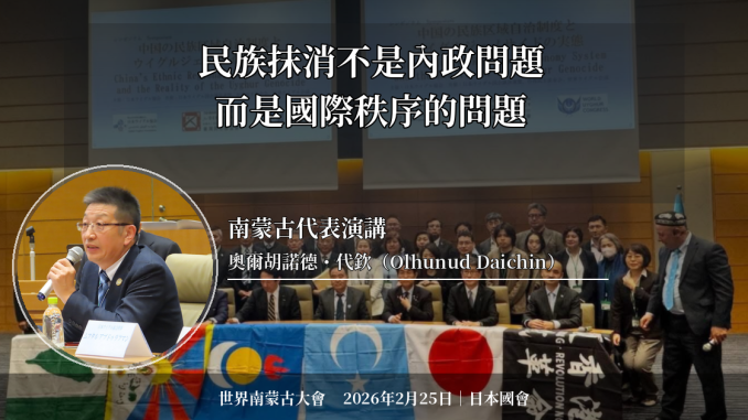 國會研討會發言:南蒙古代表論中國民族政策與國際秩序