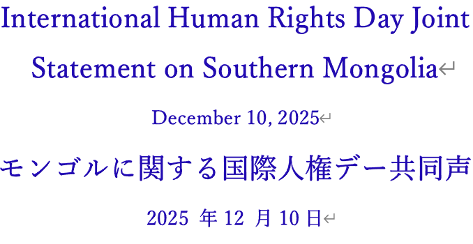 On the occasion of the 2025 International Human Rights Day, we, the Inner Mongolian People’s Party, Southern Mongolia Congress, World Mongolian Federation Japan, and the Southern Mongolian Human Rights Information Center, urgently call the international community’s attention to the grave and deteriorating human rights situation in Southern Mongolia, also known as “Inner Mongolia.”