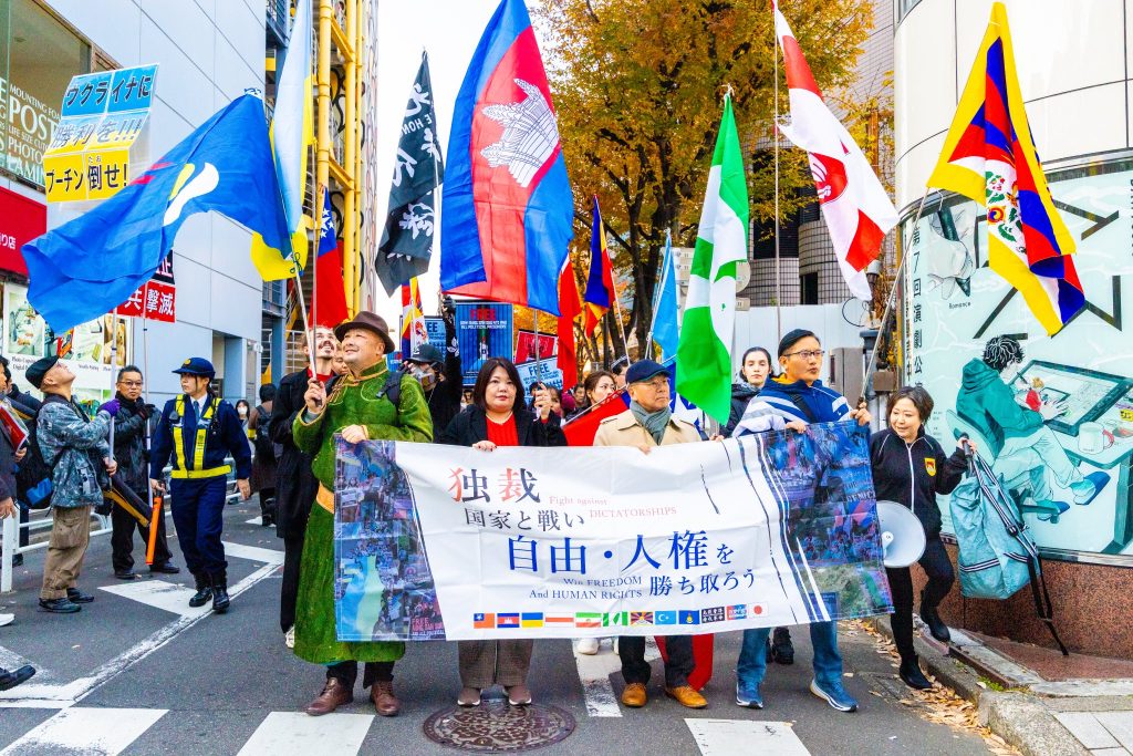 Ahead of International Human Rights Day on December 10, a series of protests, a public rally, and a peace march were held in Tokyo on December 7 to denounce ongoing human rights violations by the Chinese government. Activists and community members from South Mongolia, Tibet, Uyghur regions, Hong Kong, and other areas gathered to express solidarity and call for the protection of fundamental human rights.